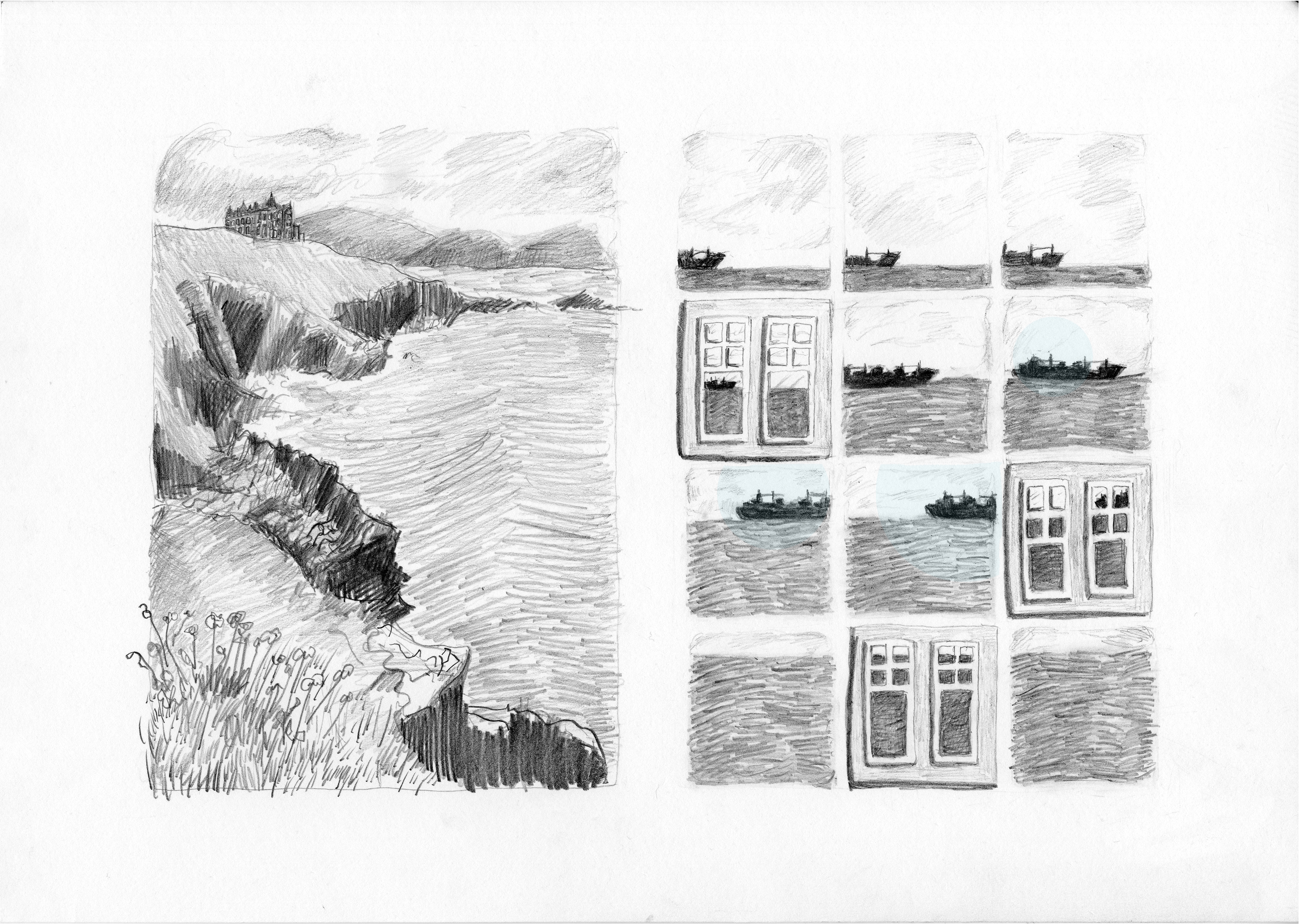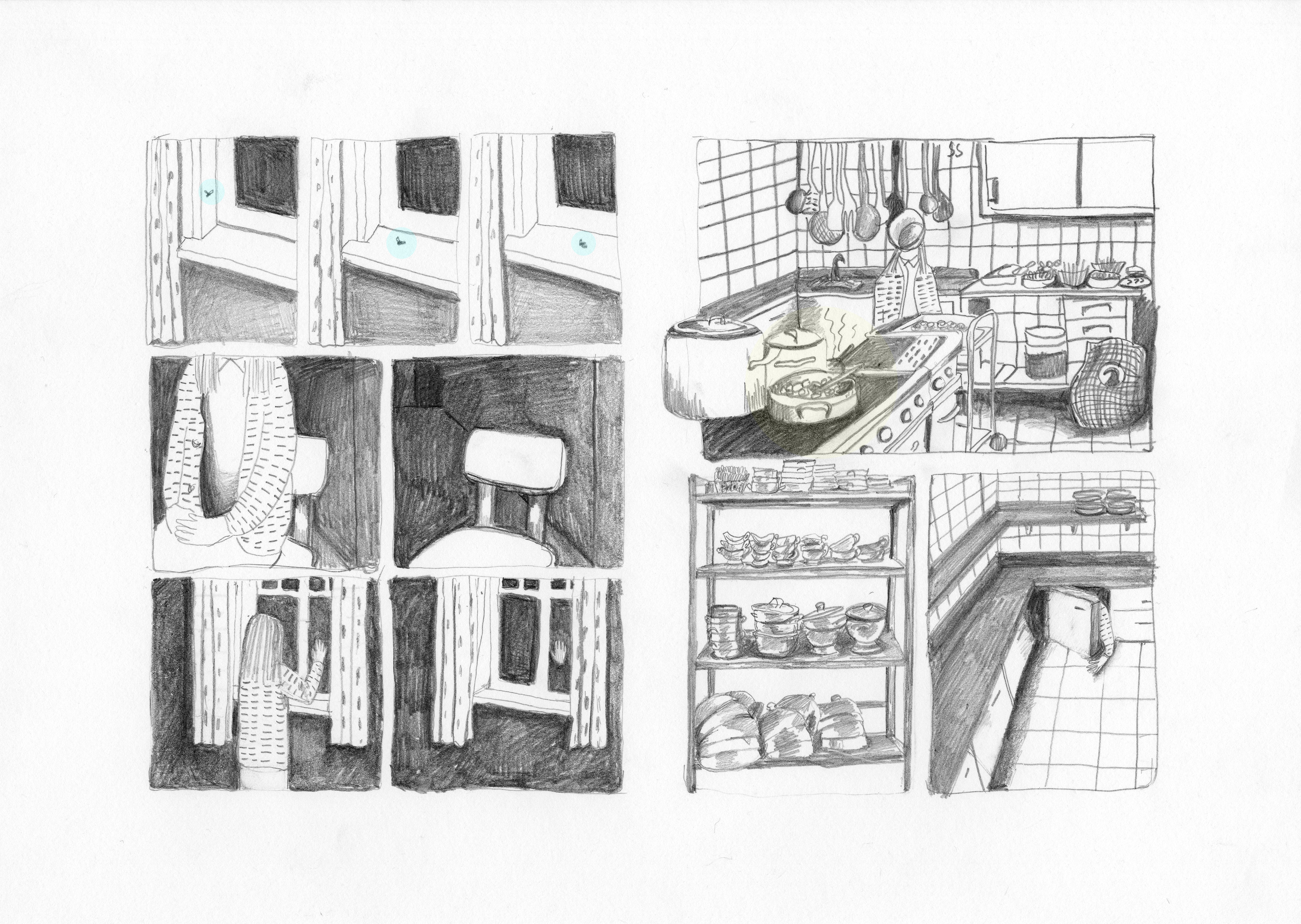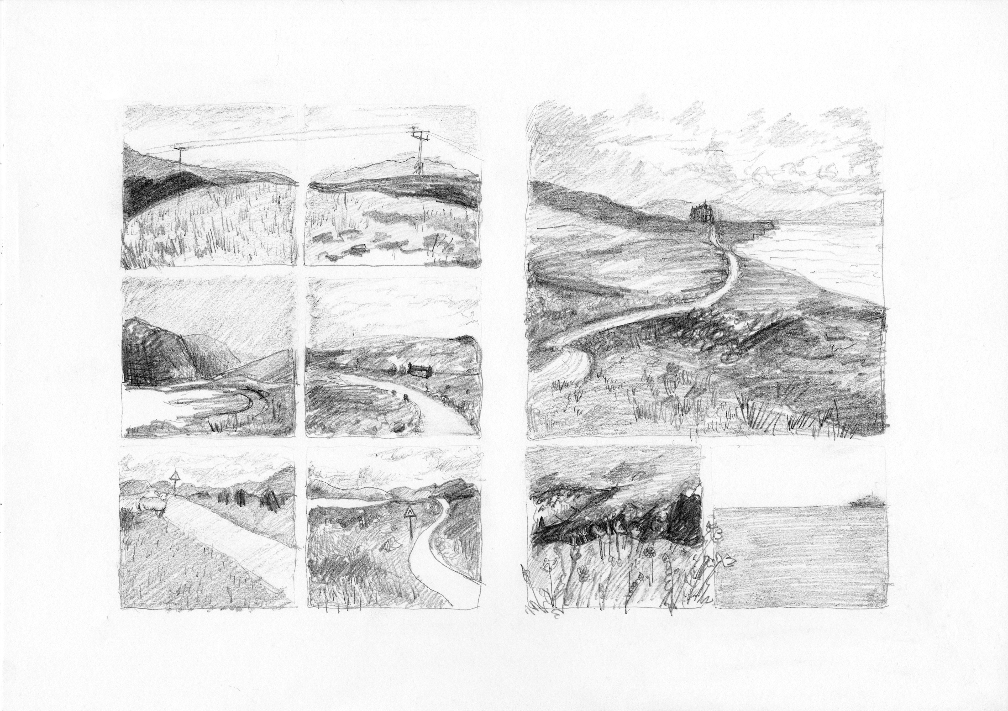 Development pages for a graphic novel